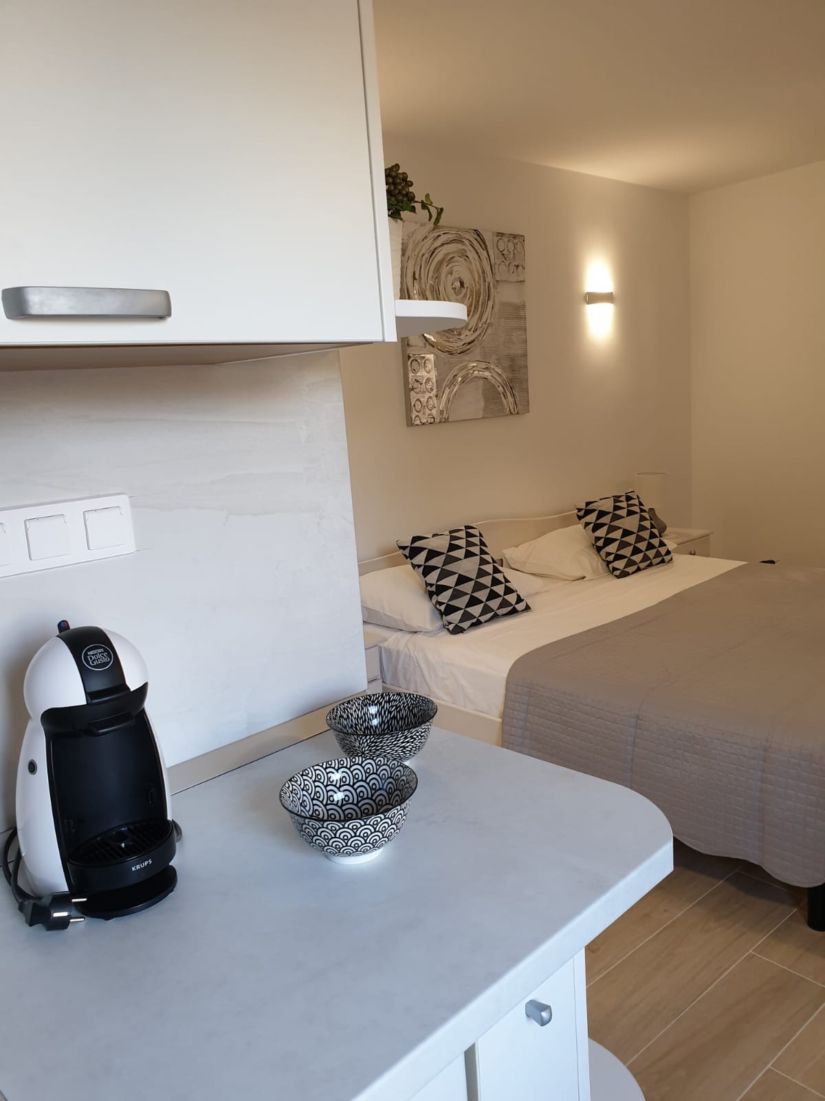 Studio flat can accommodate 2 guests. Beds are situated in 1 sleeping rooms, within 21m2. Guests can use a private terrace to enjoy the warm summer evenings. The studio offers the sea view. Food can be prepared using barbecue which is shared with other guests too. Shared pool is on disposal during stay. INCLUDED IN THE PRICE: tourist tax, final cleaning, air-conditioning, pool, parking, internet, boat mooring, baby cot, iron, ironing board, hairdryer, sunshade, sunchairs. The availability of additional services for your chosen dates of stay, as well as their prices (if none are listed) must be checked ahead of time. Any additional services not shown in the price calculation are payable directly to the property owner and only if used by the visitor.