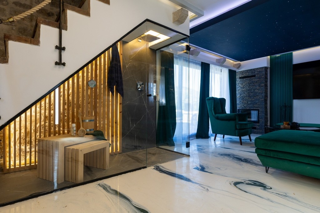 House can accommodate 5 guests. Beds are situated in 2 sleeping rooms, but also in the living room, within 91m2. Guests can use a private terrace to enjoy the warm summer evenings. For full enjoyment and relaxation there is a private barbecue for this accommodation guests only. Shared pool is on disposal during stay. INCLUDED IN THE PRICE: tourist tax, final cleaning, pool, parking, internet, iron, ironing board, hairdryer, sunshade, sunchairs. OBLIGATORY ADDITIONAL COSTS: short stay fee (surcharge depending on a number of booked nights: 30% - 1, 20% - 2, 10% - 3). The availability of additional services for your chosen dates of stay, as well as their prices (if none are listed) must be checked ahead of time. Any additional services not shown in the price calculation are payable directly to the property owner and only if used by the visitor.