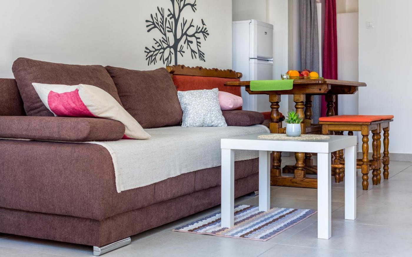 The apartment has 1 bedroom, 1 bathroom, bed linen, towels, a flat-screen TV with satellite channels, a dining area, a fully equipped kitchen, and a terrace with sea views. Guests can enjoy a meal on an outdoor dining area while overlooking the garden views. For added privacy, the accommodation has a private entrance and soundproofing.