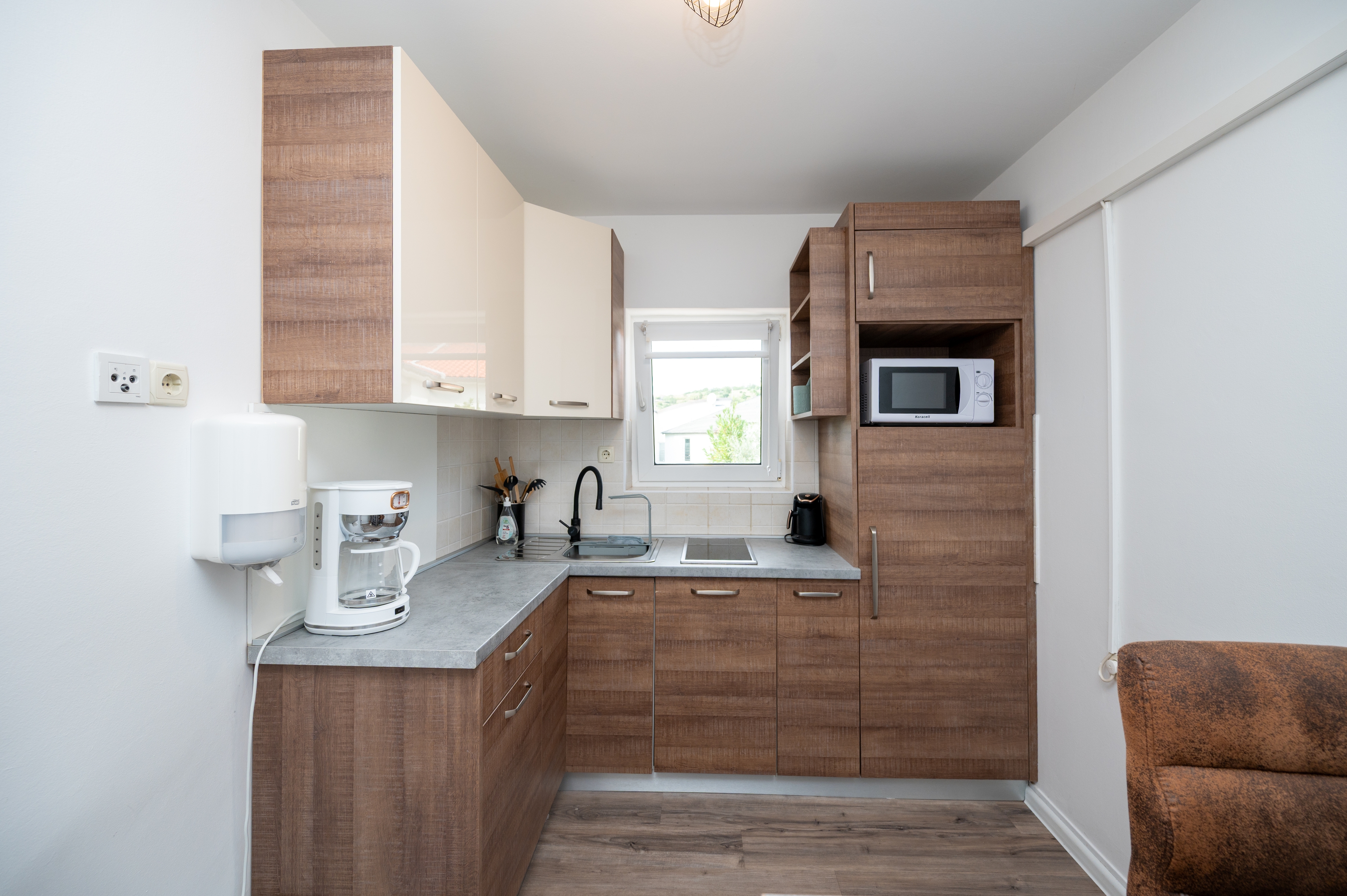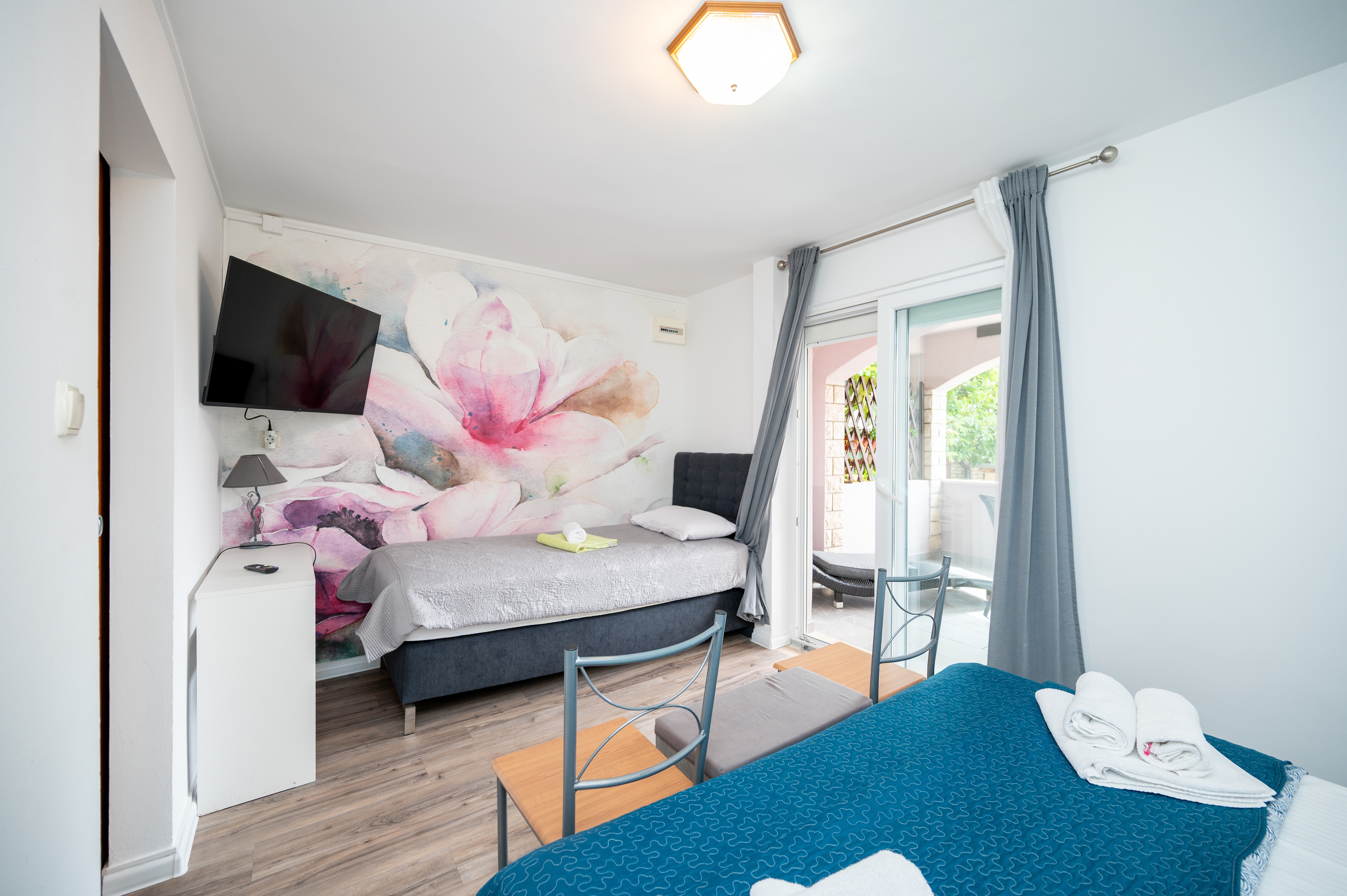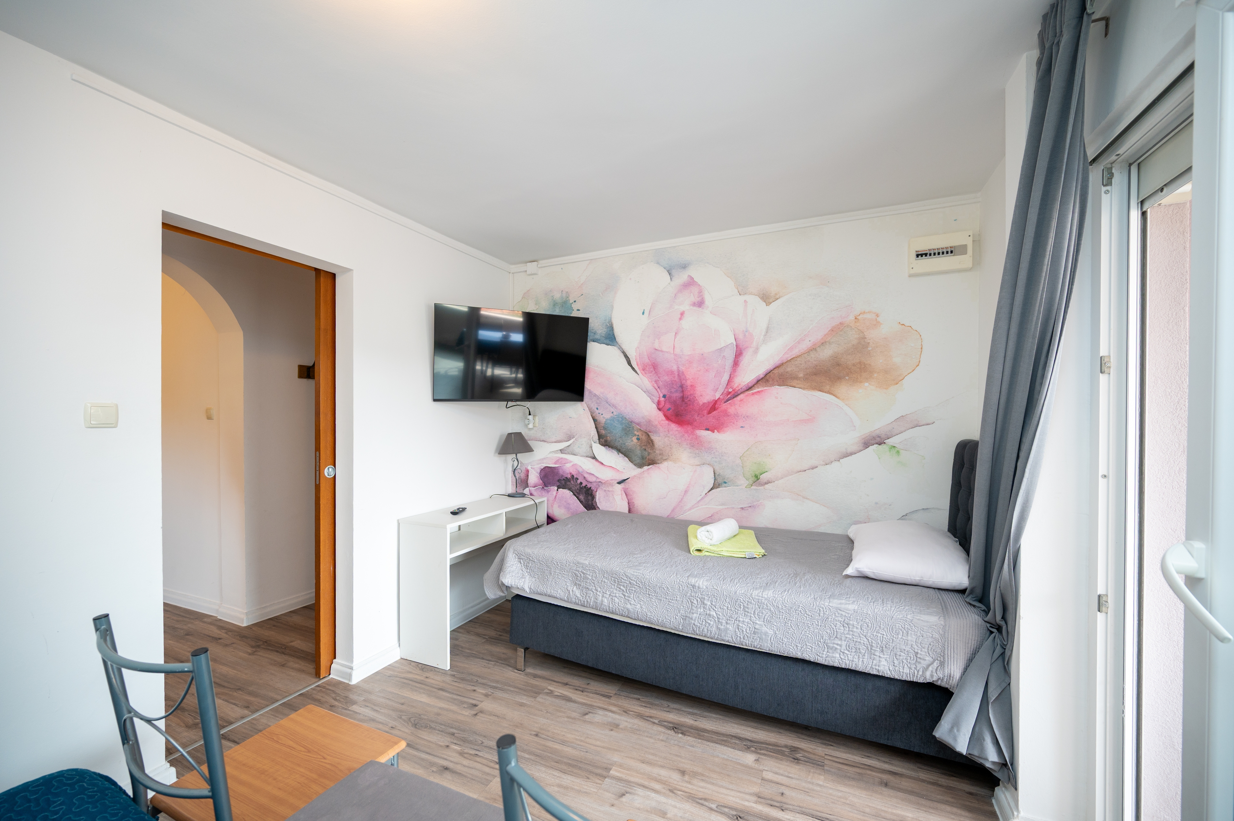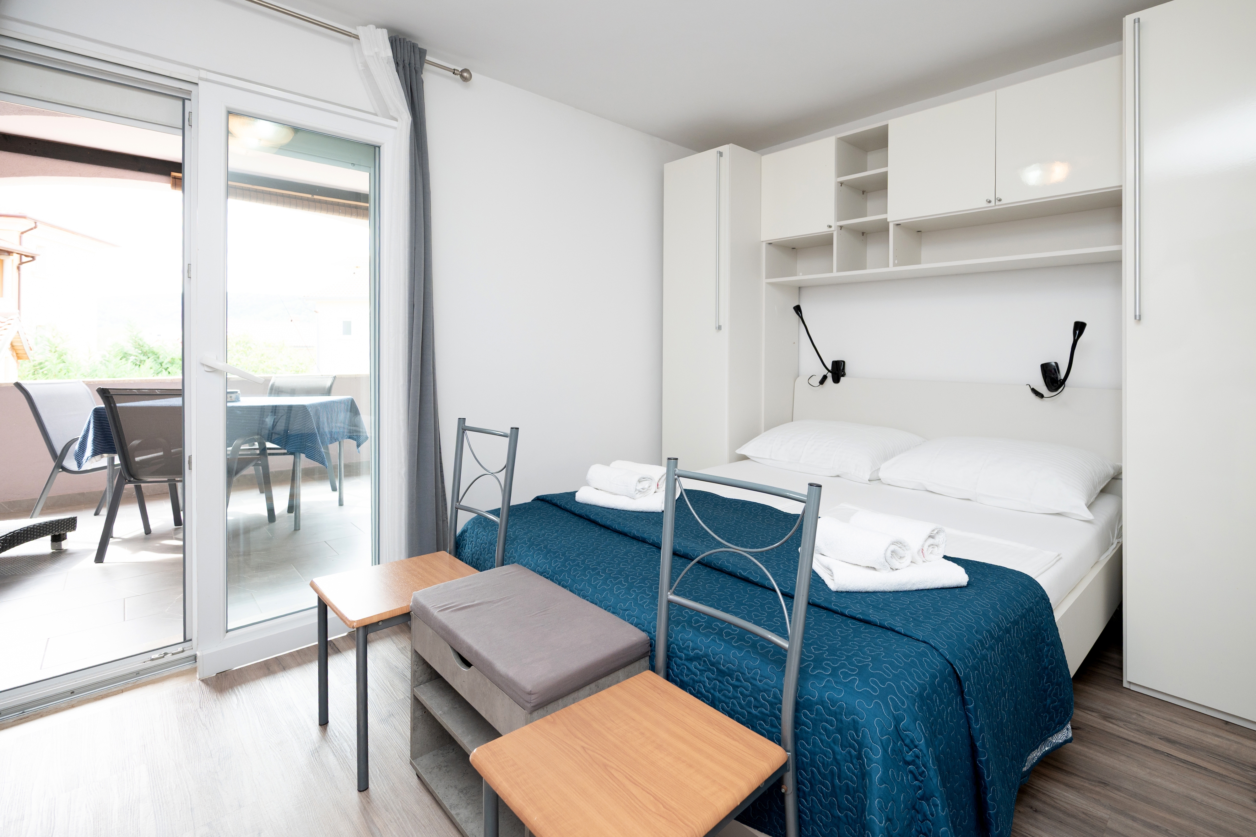 Apartment can accommodate 3 guests. Beds are situated in 1 sleeping rooms, within 27m2. Guests can use a private terrace to enjoy the warm summer evenings. Food can be prepared using barbecue which is shared with other guests too. This accommodation unit welcomes pets at an additional charge. INCLUDED IN THE PRICE: final cleaning, air-conditioning, parking, internet, bicycle, baby cot, iron, ironing board, hairdryer. OBLIGATORY ADDITIONAL COSTS: tourist tax (adults €0.93 - €1.90 nightperson, discount for children aged 12 - 17), short stay fee (surcharge depending on a number of booked nights: 30% - 1, 20% - 2, 10% - 3). OPTIONAL ADDITIONAL COSTS: laundry (€5.00 washing), pets (€15.00 per night). The availability of additional services for your chosen dates of stay, as well as their prices (if none are listed) must be checked ahead of time. Any additional services not shown in the price calculation are payable directly to the property owner and only if used by the visitor. Discounts to the base price: free day 28=25 (for stays of 28 days or more, we give you 3 days free of charge for the stay until 31122026).