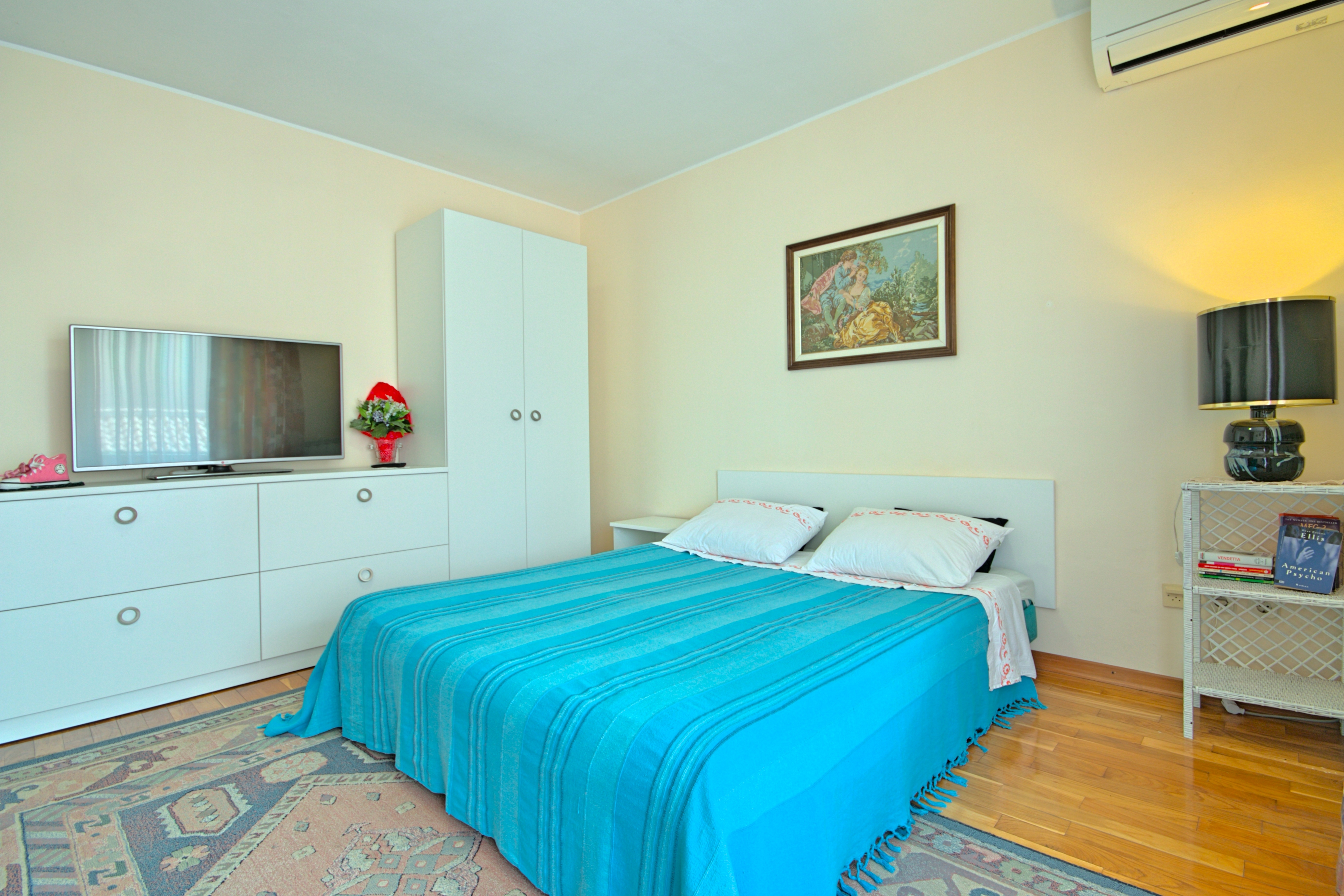 Apartment can accommodate 4 guests. Beds are situated in 1 sleeping rooms, but also in the living room, within 50m2. Guests can use a private terrace to enjoy the warm summer evenings. INCLUDED IN THE PRICE: tourist tax, final cleaning, air-conditioning, parking, internet. The availability of additional services for your chosen dates of stay, as well as their prices (if none are listed) must be checked ahead of time. Any additional services not shown in the price calculation are payable directly to the property owner and only if used by the visitor.